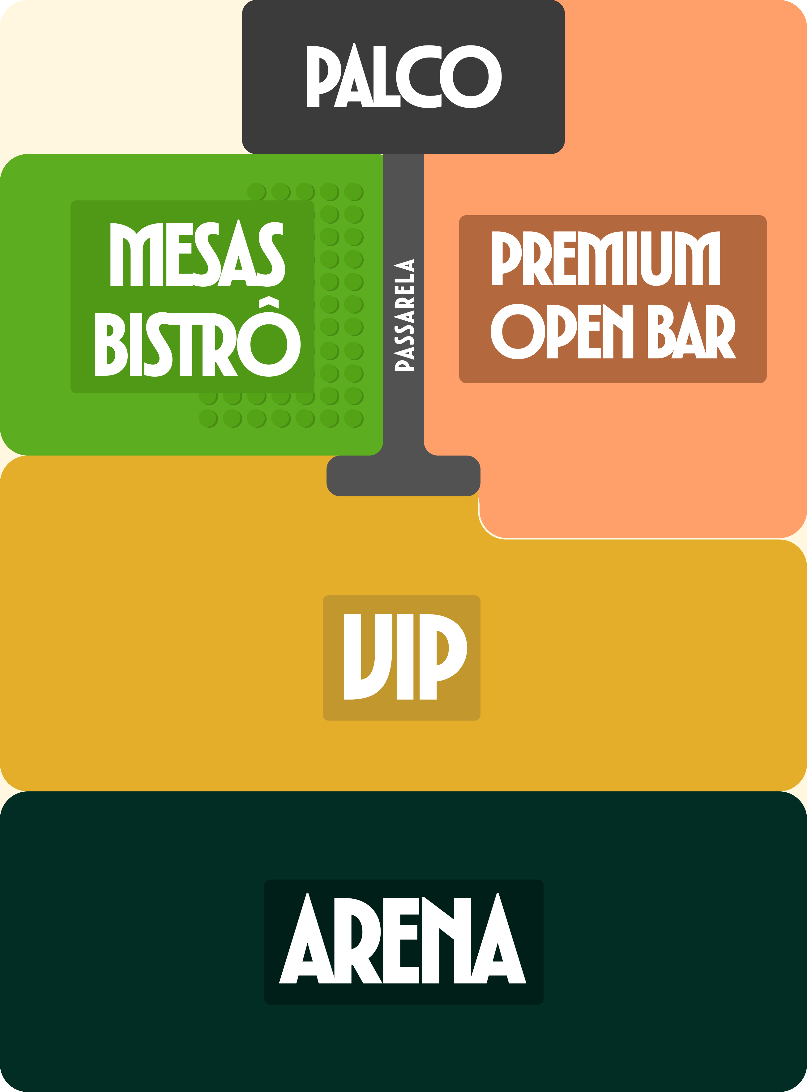 -Acesso à frente do palco e à passarela;